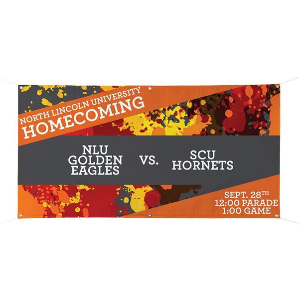 • Indoors or Outdoors, this sturdy hard working banner catches attention.• Printed on a 15oz scrim with heat welded edges for additional strength. • Grommets and rope for hanging included!• Digital Full Color